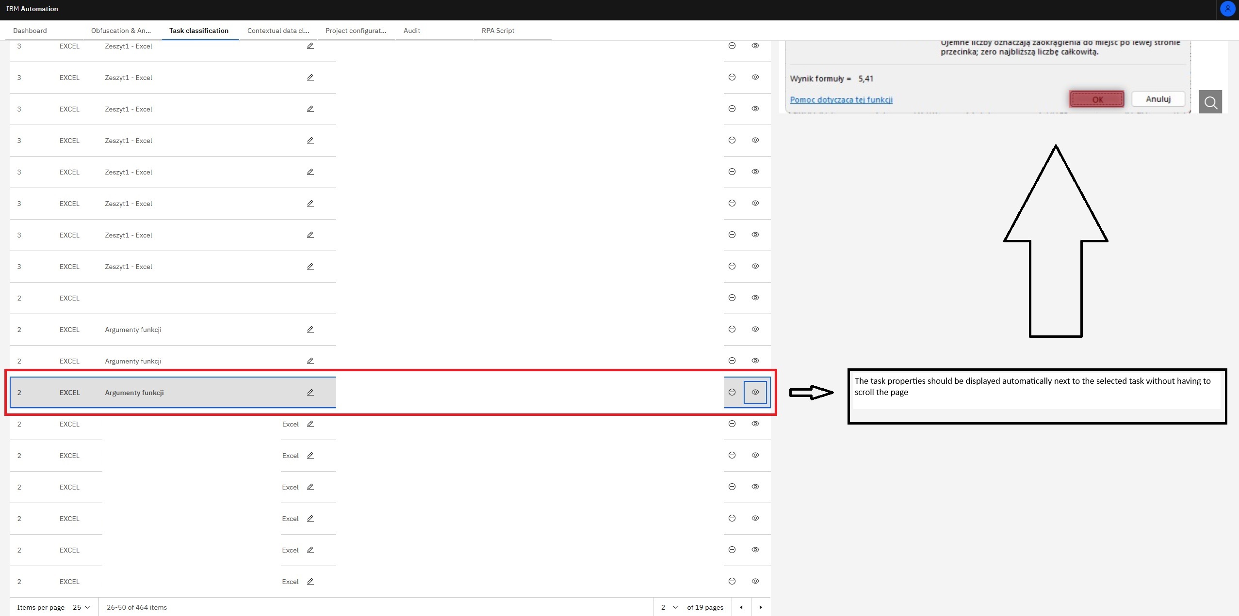 If we have a long list of tasks, we have to scroll up the page each time to preview the tasks lower down in the list. The preview should be displayed automatically next to the selected task without having to scroll the page.