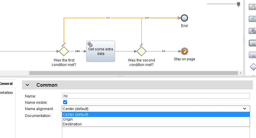 Can you leave for the developer to choose: middle, source or destination as text align options.